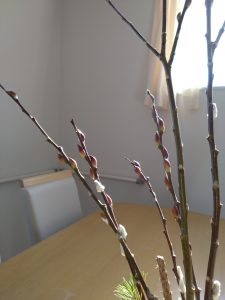 年末よりずっとリビングに生けていたネコヤナギ。